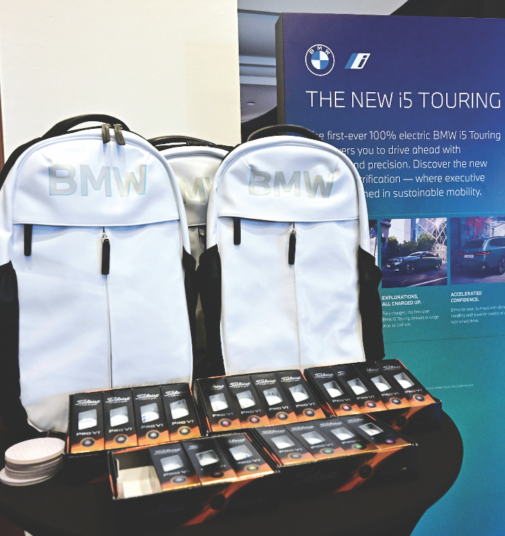 Winning one of the four fantastic hole-in-one prizes was on the back of each golfer’s mind. Cornerstone Wines sponsored the 120-wine cellar filled with 120 bottles of wine worth S$8,888 at the shortish hole 4 with a panoramic backdrop of the city skyline and Marina Bay Sands. At hole 15, a trip for two on Insight Vacations Country Roads of Portugal worth US$5,000 was to be had for an ace. W Atelier’s $30,000 sponsorship of designer furnishings awaited the lucky player at hole 17. And a golfer could drive away a BMW i5 touring for a hole-in- one at the monstrous 238m seventh hole.