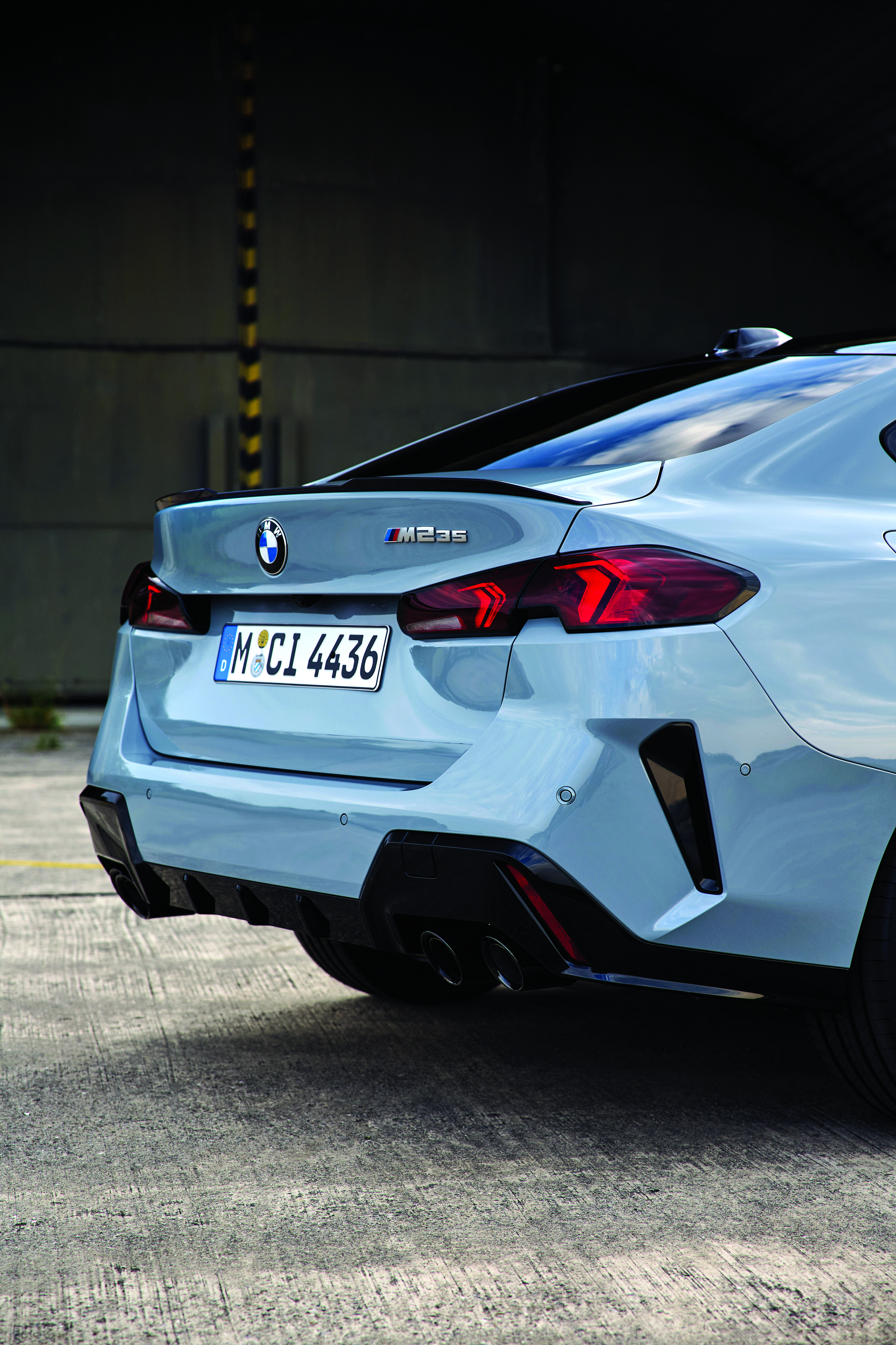 The front section is expressively accentuated with a dynamically elongated silhouette leading to a “powerfully designed” rear. The wide BMW radiator grille positioned below the headlights featuring an innovative structure of vertical and diagonal bars inside and the large lower air inlet give the all new BMW M235 xDrive Gran Coupé a low-slung, road-hugging appearance. The standard Adaptive LED headlights come with glare-free matrix high beam, cornering light function, and blue accentuations.