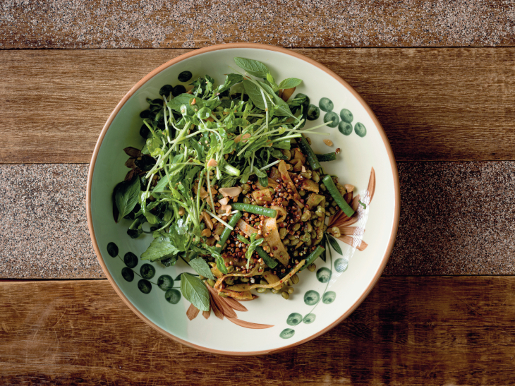 Local greens are cast in a delicious light with starters like Chayote Kimchi and Mung Bean Salad, a toss-up of slow-cooked mung beans, snake beans and an old-style Korean kimchi made using local chayote and turnip with a smattering of crispy buckwheat and toasted peanuts; and Super Green Warm Soup is a vision of health that blends Chinese spinach, bok choy, shanghai green, chye sim, kaffir lime and lady’s finger in a flavourful mushroom broth, served with a dollop of beetroot picked ricotta, toasted candle nuts, sautéed shimeiji and green parsley oil.